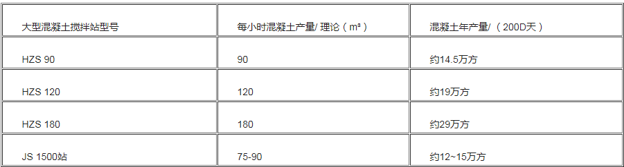 所以說,大型攪拌站的混凝土年產量多少,主要跟攪拌站的型號有關。 (下圖是輝宏為大家做的大型混凝土攪拌站型號的年產量)